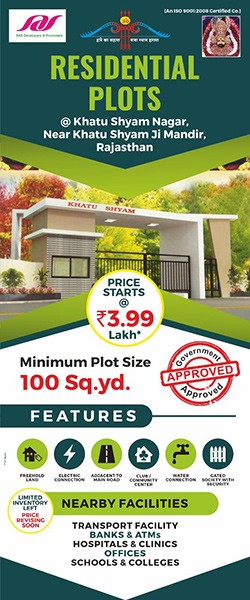 We belive in spiritual living, as a result the group referrers premium plots of 100sq yard size having all the necessities within the reachable radius of divine city shri Khatu Shyam Ji, the people at an affordable price it is to fulfill the dream of the devotees of lord krishna to own a land in Shri Khat Khatushyam Ji.